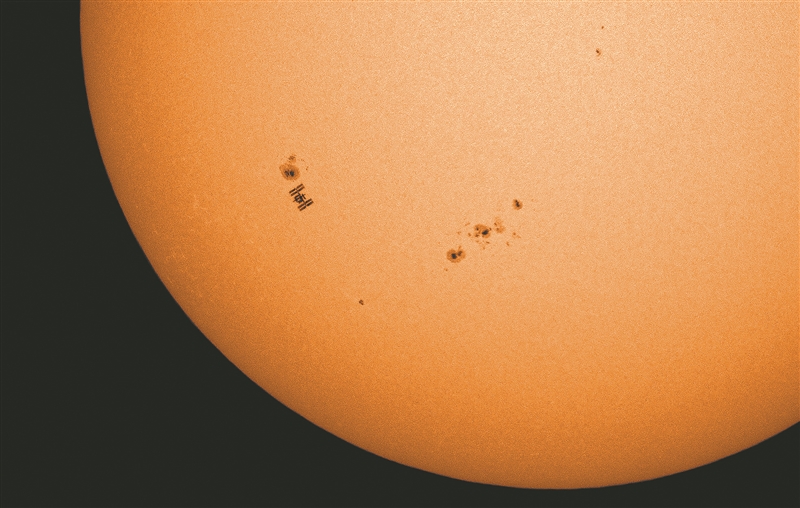 近来,太阳黑子活跃,引发了全球范围内的地磁暴和极光。图为6月3日,在江苏省南通市通州区刘桥镇成功拍下的国际空间站飞越太阳黑子群瞬间。画面中,太阳耀斑与国际空间站同框,是极为精准的计算与天象结合的奇观。杨天垚 摄
