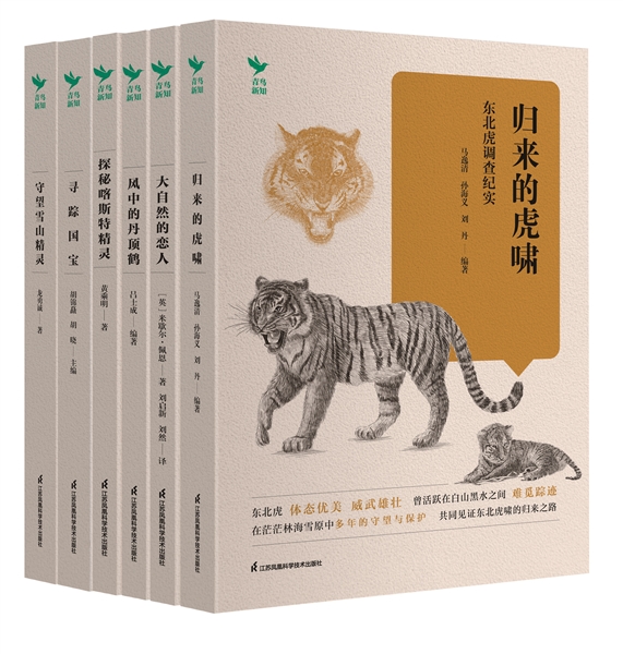 | “青鸟新知”人文科普文库第一辑,马逸清 孙海义 刘丹等编著,江苏凤凰科学技术出版社出版。 “青鸟新知”人文科普文库第一辑共6册,是对生态保护与自然发现历程中守护力量的致敬与礼赞。《寻踪国宝》《归来的虎啸》等5种动物保护主题图书是关于我国5种珍稀濒危旗舰物种保护事业的科学家手记,展现了科学家数十年如一日的坚守;《大自然的恋人》则通过玛丽安娜·诺斯的全球植物画旅,传递跨越时空的自然热爱。 |