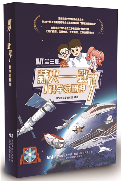 | 《薪火——致敬科学家精神》,辽宁省科学技术馆编著,辽宁科学技术出版社出版。 这是一部三卷本的有声科普漫画作品。故事主人公是初二学生“宁宁”,他在笔记精灵“薪火”的帮助下,和小伙伴“安安”“天骄”等,以科技馆展品为故事线索,近距离感受中国科学家精神和他们在科学领域的卓越成就。全书介绍了顾诵芬、于敏、黄旭华等15位科学家的奋斗故事及其科研成果。 |