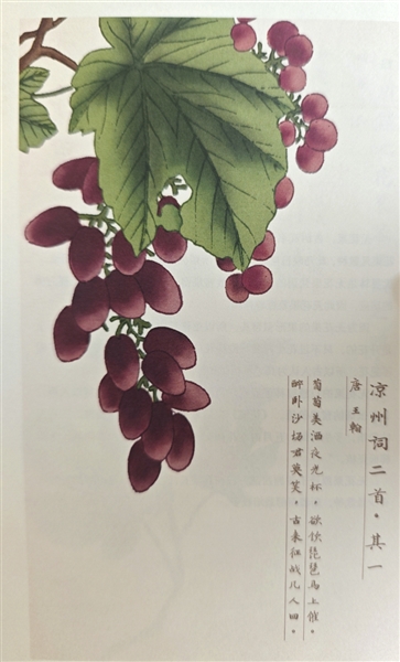 我国中原本土有野生的葡萄,在《诗经》里就有记载,但今天我们所熟悉的品种原产于黑海和地中海沿岸,经伊朗高原、中亚细亚传入中国新疆。考古人员曾在吐鲁番鄯善县洋海墓地出土约2500年前的葡萄标本,在苏贝希墓葬也发现了战国时期的葡萄籽。西汉时,张骞出使西域,将葡萄种植技术与品种从中亚大宛引入中原,随后在各地广泛种植。一望无际的葡萄和苜蓿曾经是长安的一大奇观,汉武帝还专门招募了来自西域的酿酒艺人酿造葡萄酒。有关葡萄美酒最有名的诗句就是王翰的《凉州词》:“葡萄美酒夜光杯,欲饮琵琶马上催。”渲染的是出征之前的酒席,表现了战士们将生死置之度外的悲壮和豪迈。