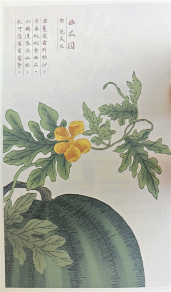 时值溽(rù)暑,西瓜乃消夏佳品。其名昭示着“西”来之渊源。据考证,西瓜原产于非洲,经丝绸之路传入我国,五代时期开始在中原种植,宋代得以普遍推广。诗人范成大的《西瓜园》:“碧蔓凌霜卧软沙,年来处处食西瓜。形模濩落淡如水,未可蒲萄苜蓿夸。”生动描绘了西瓜生长场景,展现其在市井普及,借西瓜粗放的外形暗喻文人品格。诗中的“蒲萄苜蓿”就是葡萄和苜蓿,也是来自西域的美食。诗人文天祥的《西瓜吟》:“拔出金佩刀,斫(zhuó)破苍玉瓶。千点红樱桃,一团黄水晶。下咽顿除烟火气,入齿便作冰雪声。”寥寥数语,切瓜之态、瓜瓤之美、食瓜之沁凉,快意尽显。