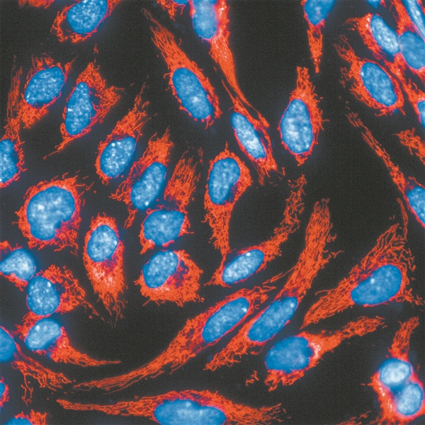 细胞染色时,实验人员要先将不同性能的荧光染料分散于缓冲液中,使其与待检的细胞充分接触,识别它们的形态结构。在显微镜下观察,荧光染料就像排爆兵一样,给细胞里的各种结构都插上闪闪发光的“小旗子”进行标记。想象一下,细胞里的那些细胞器,比如线粒体、高尔基体、内质网等,原本就像混在一堆沙子里的小石子,难以辨认,但有了荧光染料,这些细胞结构各自发出独特的光芒,瞬间变得清晰可见。