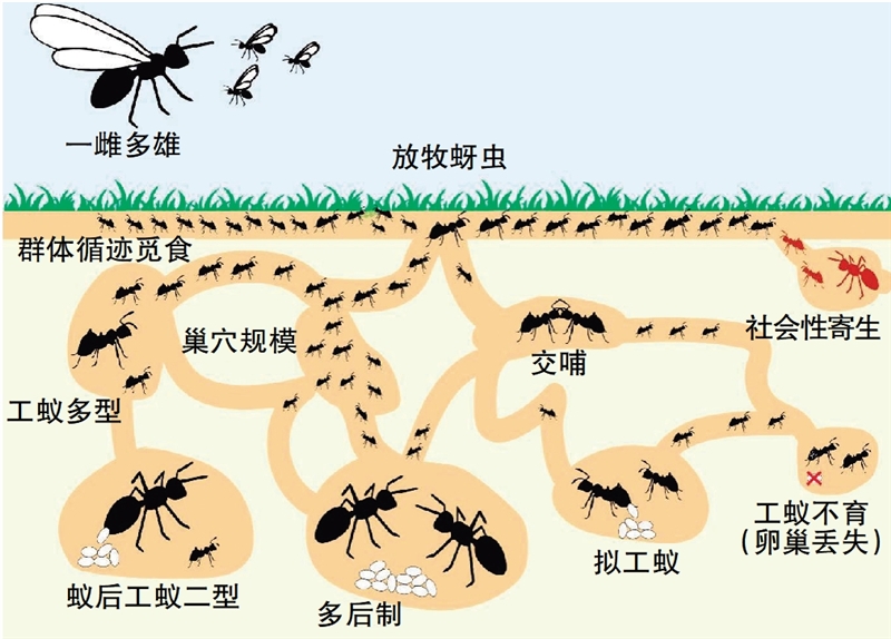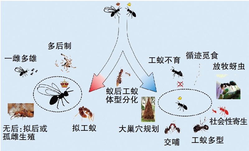 | 蚂蚁品级和社会组织特征的演化 (作者供图) |