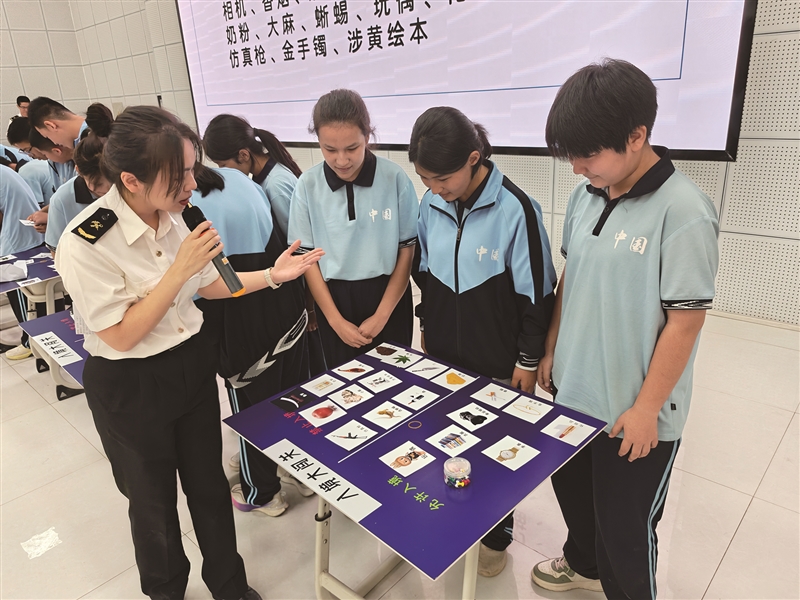 | 图为广州海关团队成员指导同学们完成“入境大闯关”互动游戏。 (本版图片由科普时报记者 胡利娟 摄) |