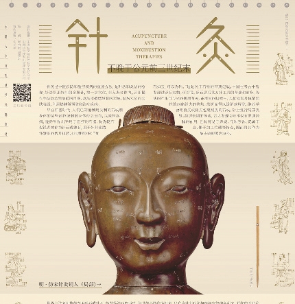 宋代,著名针灸学家王唯一编撰了《铜人腧穴针灸图经》,考证了354个穴位。他还铸造了两具铜人模型,外刻经络穴位,内置脏腑,作为针灸教学的直观教具。