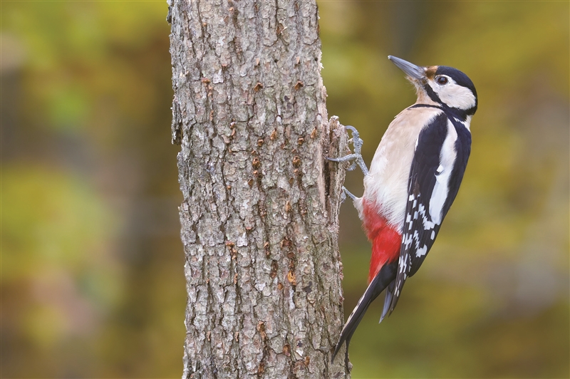 | 图为啄木鸟栖息在树干上。 视觉中国供图 |