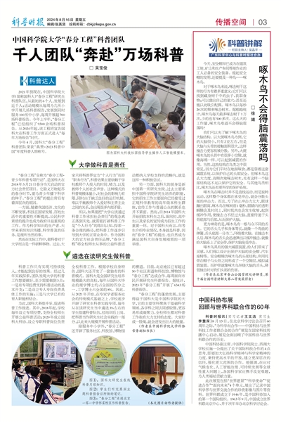 | 《啄木鸟不会得脑震荡吗》一文刊载于2024年8月16日《科普时报》3版。 |