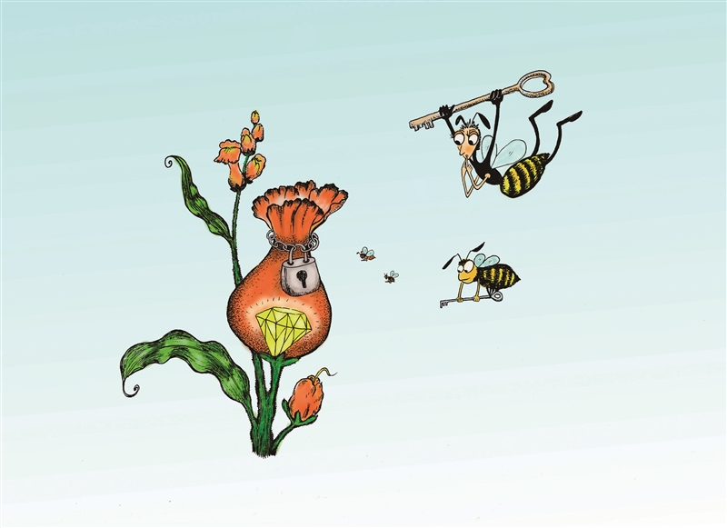 最后,当蜜蜂唱着歌飞来时,金鱼草的喜悦显而易见——“鱼肚子”花囊简直是为蜜蜂量身定做的。蜜蜂轻松钻进去,一边享用花蜜,一边把背上沾着的另一朵金鱼草的花粉蹭到柱头上,完成异花传粉。