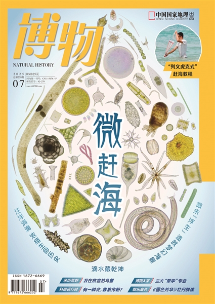 往年,《博物》曾带大家体验各种各样的赶海:在滩涂上采集螺贝螃蟹、在潮池中观察鱼虾、在礁石间垂钓撒网……今年,让我们跟随2025年《博物》杂志第7期进行一场别开生面的“微赶海”,在显微镜下,打开另一个维度的海洋世界。