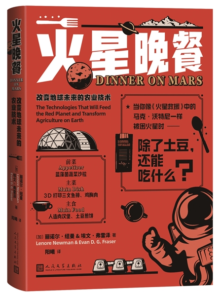 人民文学出版社下月将推出一本引进版趣味科普书,书名挺别致,科幻味十足:《火星晚餐:改变地球未来的农业技术》。两位作者丽诺尔·纽曼和埃文·弗雷泽均系加拿大的食品科学家,还自称“都是狂热的科幻迷”,喜欢逃避现实的感觉,也欣赏优秀的科幻作品提供探索未来可能的发展方式。