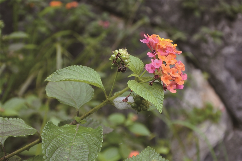 马缨丹又名五色梅、臭草、如意草等,是一种多年生半藤状灌木,原产于中美洲和南美洲的热带、亚热带地区。其茎呈四棱形,表面有短柔毛和倒钩刺,叶片形似尖桃或心形。花朵初开时多为黄色,后渐转红色;果实则由青色逐渐变为紫黑色。由于四季花果不断,整株植物色彩丰富,马缨丹极具观赏性。正因如此,17世纪荷兰探险家将它从巴西带回欧洲。后来马缨丹又被引入英国、北美,再经夏威夷传播至太平洋岛屿、澳大利亚和南亚。到十八九世纪时,马缨丹已成为广泛栽培的商业品种。