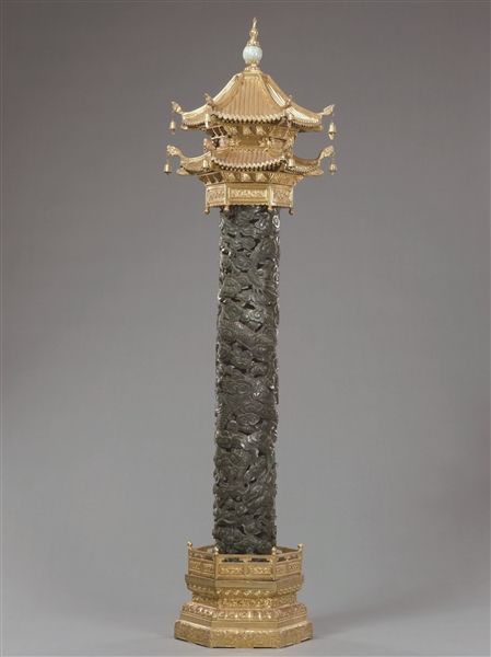 | 碧玉透雕云龙纹香筒 |