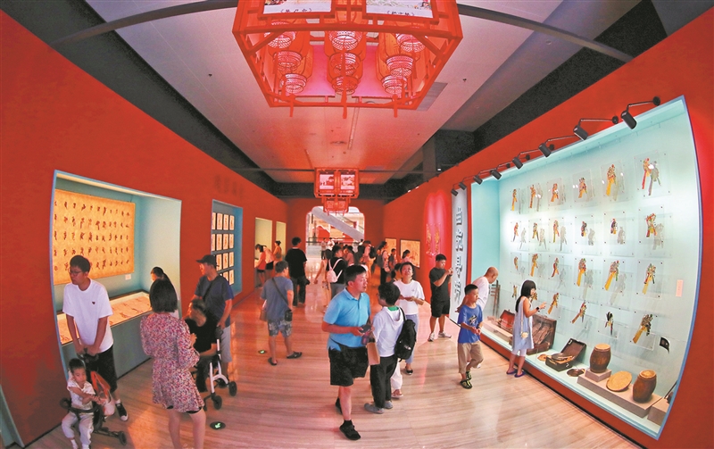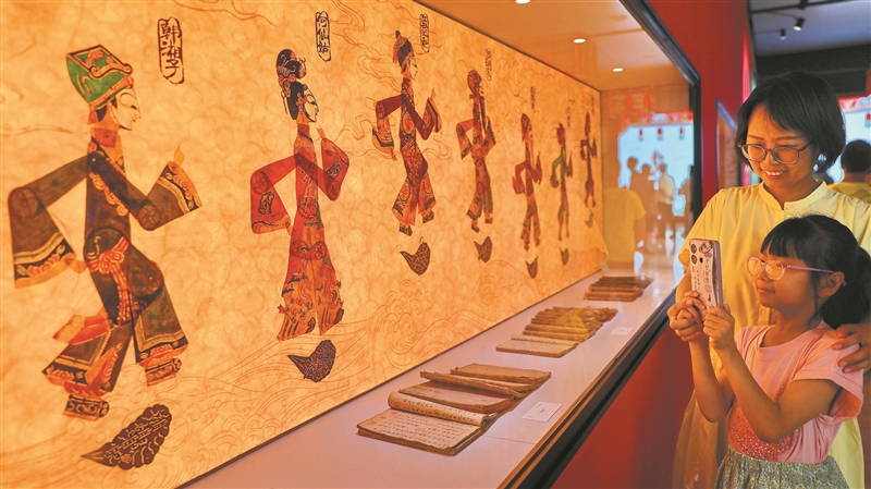 | 7月29日,秦皇岛博物馆内,不同时期的皮影作品吸引了众多观众前来观看。 |