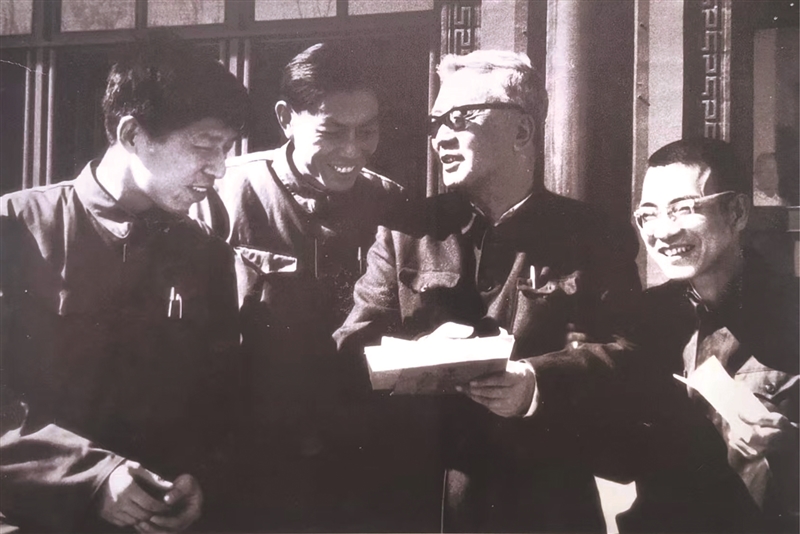 | 图③:1978年,全国科技大会上华罗庚与他的学生陈景润(右一)、杨乐(左一)、张广厚(左二)交谈。 本文图片由作者提供 |