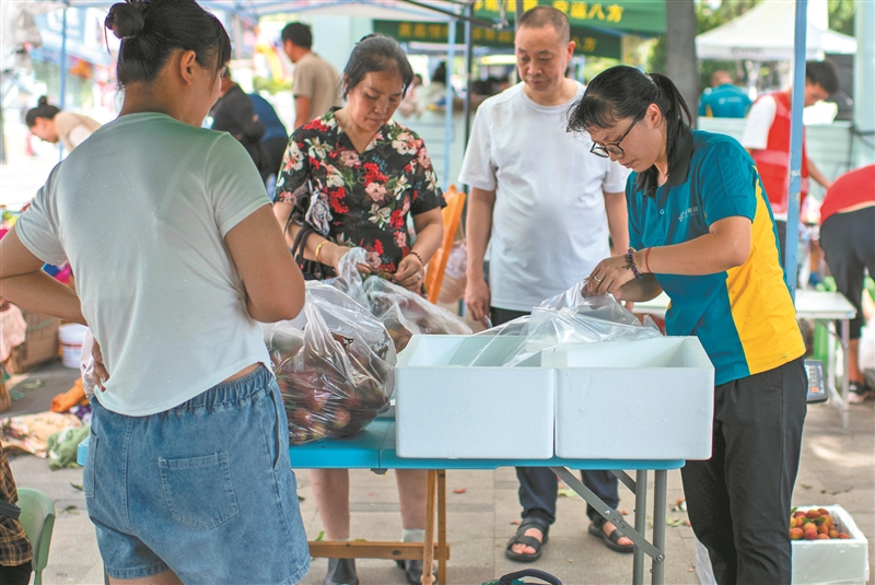 | 7月16日,游客将选好的荔枝打包发快递。 |