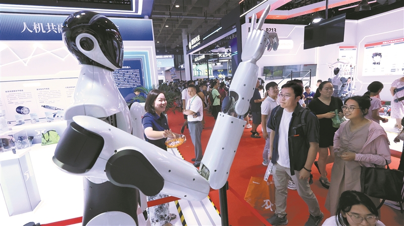 从理论创新走向社会实践,在AI(人工智能)、大数据等技术的支持下,与人类展开较量的人形机器人,正迅速渗透到工业制造、家庭服务、医疗护理、应急救援等各类应用场景,实现全领域覆盖。在江淮中心展台,绳索关节驱动、具有侧摆运动功能的灵巧手,为首次亮相的绳驱S1人形机器人注入强韧“筋骨”。它们不但能精准抓取微小的糖果,还能张开五指稳稳地抓取气球,或者通过五指协同转动旋拧瓶盖。这些技术突破,正在解锁服务机器人的广阔未来。