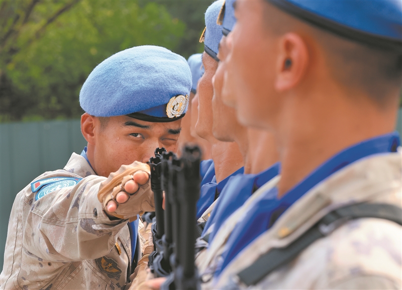 纪念中国人民抗日战争暨世界反法西斯战争胜利80周年大会举办在即,阅兵训练有条不紊推进,各项准备工作进展顺利。图为参阅队员在进行训练。 新华社记者 殷刚 摄