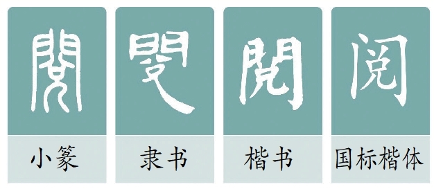 “阅”由“门”和“兑”组成,是一个形声字。“门”是意义符号,在这里表示门里、室内;“兑”是声音符号,在这里代表读音。“阅”的本义是在室内考察、计算事物。《说文解字》:“阅,具数于门中也。”可以想象这个画面:主事之人,对着账目,盘点家里的财产,核对珍贵物品的数量,计算收入和支出情况。“阅”后来泛指察看、视察,比如“检阅”。仔细想来,阅兵和盘点家产的感觉也有异曲同工之妙呢,只不过盘点的不是全部财产,而是军事力量。
