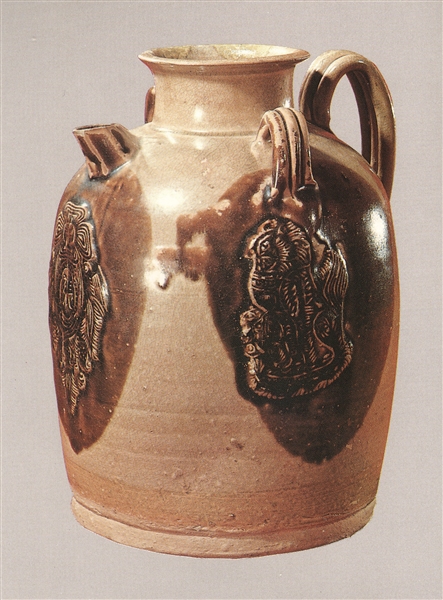 | 长沙铜官窑出土褐釉贴花壶(湖南省博物馆藏)。 孙晓岗 摄 |
