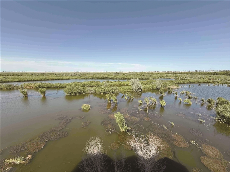 玛纳斯国家湿地公园风景如画。在荷花丛中的凉亭小憩,阵阵清风拂来,让人几乎不敢相信自己正身处新疆。近日,科普时报记者跟随“治水兴水看新疆”主题采访活动来到新疆昌吉玛纳斯县,探访这座北疆最大的湿地公园。