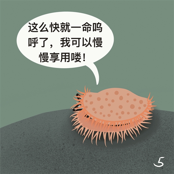 捕蝇草海葵以虾、蟹、小鱼等动物为食,它的捕食系统精妙又高效:首先会用基盘固着在海底,再把长有数十根触手的口盘朝向水流。当猎物接近时,柔软的口盘能瞬间从中间弯折,形成封闭牢笼。其触手上的刺细胞随即注入毒液,待猎物被麻痹后,再通过中央的口部缓慢享用这份“美食”。