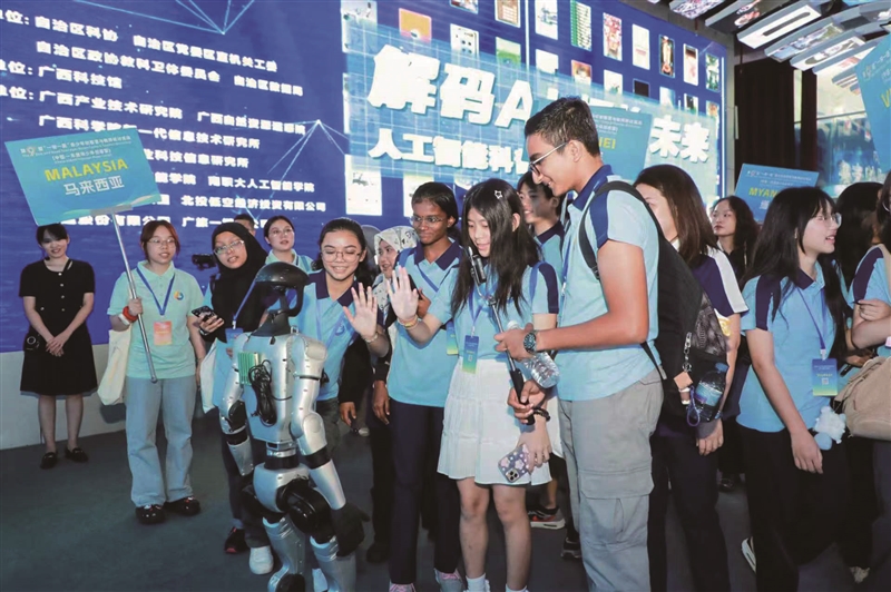 | 参加第九届“一带一路”青少年创客营与教师研讨活动的外国青少年开启7日“AI创享之旅”。 广西科技馆供图 |