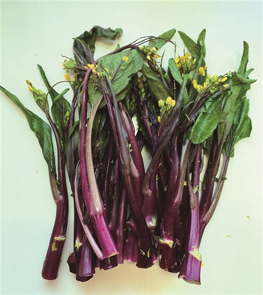 盘点武汉风味,少不了一把菜薹。深紫的秆子蒙着白色蜡粉,绿叶挂着雾一样的水汽,一捆捆躺在秋末冬初的菜市场台面上等待人们购买。拿起一把沉甸甸的,装进提袋或菜篮,总有几朵小黄花探出头,随脚步颤颤摆摆。