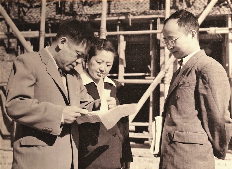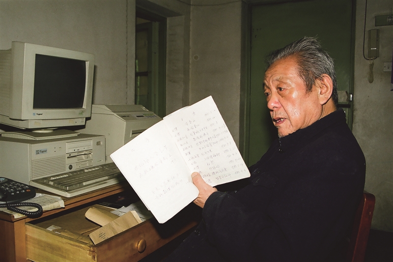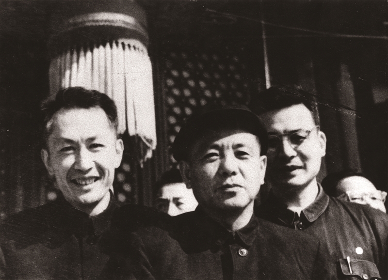 | 图①: 1966年国庆节,天安门城楼,左起朱光亚、彭桓武、邓稼先。张爱萍 摄 图②: 1959年,彭桓武(左)、何泽慧(中)、黄祖洽(右)在北京房山401所反应堆建设装置前。黄萌供图 图③: 1984年彭桓武在家中工作。侯艺兵 摄 图④: 彭桓武先将诗写在练习本上,然后再录入电脑。 侯艺兵 摄 |