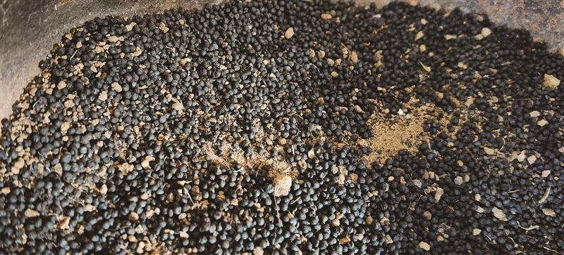 | 图①: 成熟的粟穗。 图②: 内蒙古兴隆沟遗址出土的炭化粟。 李富 摄 |
