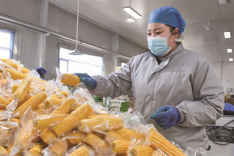 | 工人分拣真空包装玉米。新华社记者 张楠 摄 |