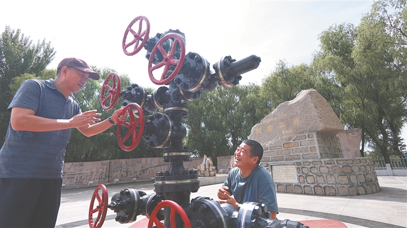 | 8月8日,大庆石油人在松基三井参观,回望大庆油田的钻探历史。 |