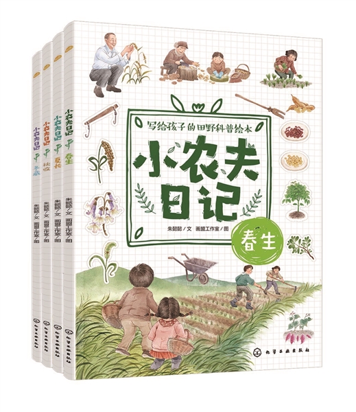 | “小农夫日记”系列,朱懿懿文,画盟工作室图,化学工业出版社出版。 该系列图书以儿童视角铺展乡村四季画卷,围绕主人公平平一家的农事日常,巧妙融入二十四节气智慧,完整呈现“春播、夏护、秋收、冬藏”的自然循环。书中讲解农作物科学常识,同时传递了农民勤劳的品质和对生命的敬畏,让孩子在阅读中感知农耕时序之美,完成乡土智慧的寻根之旅。 |