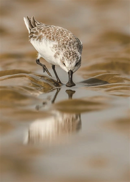 在这里,“勺子嘴”派上大用场!最新研究发现,其喙尖独特三角形结构,如迷你“水中漏勺”,能高效夹食又滤泥水。靠这“独门绝技”,勺嘴鹬每天“疯狂干饭”,单位时间吃得比其他鸟类多,体力恢复飞快。短短几周,体重翻倍,磨损的红棕色“繁殖礼服”也换成灰白色“越冬外套”,为南飞做足准备。