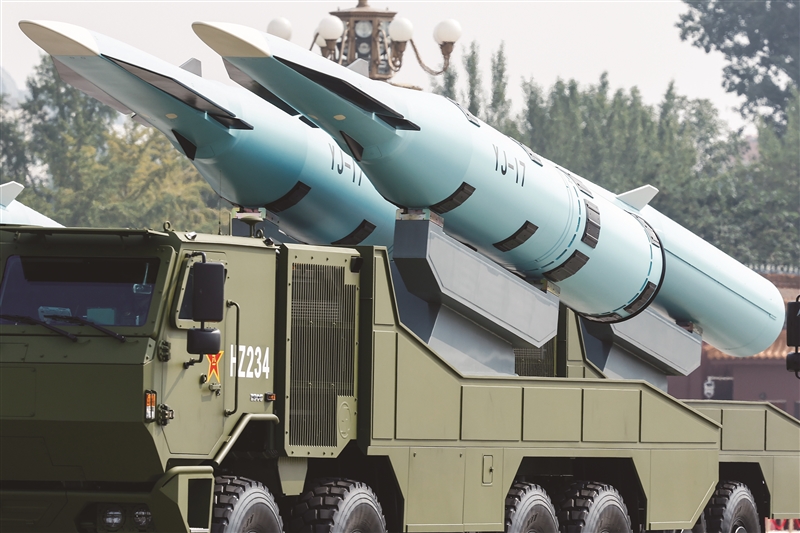 | 9月3日,纪念中国人民抗日战争暨世界反法西斯战争胜利80周年大会在北京隆重举行。图为反舰导弹方队接受检阅。新华社记者 张玉薇 摄 |