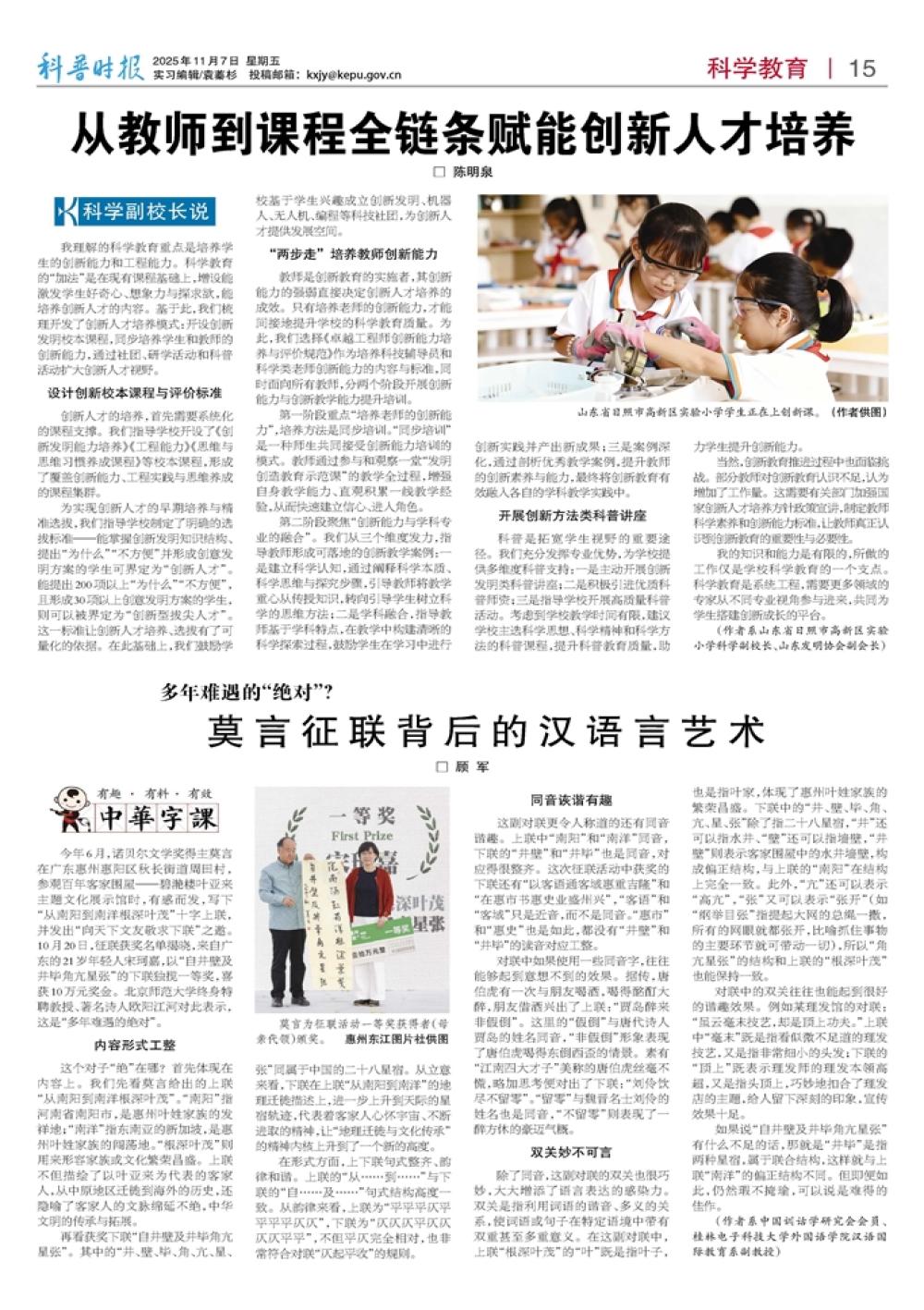 从教师到课程全链条赋能创新人才培养