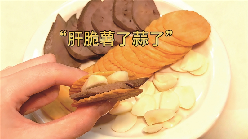 最近,一款名为 “肝脆薯了蒜了” 的网红零食在社交平台上爆火。它是猪肝、薯片、大蒜的创意组合——两层香脆薯片中夹着卤制猪肝和蒜片。这种看似“黑暗”的搭配,却吸引了不少网友尝试:三者口感融合,越吃越“上头”,网友直呼 “绝配”。不过,吃这种零食,到底是给身体补营养还是添负担?