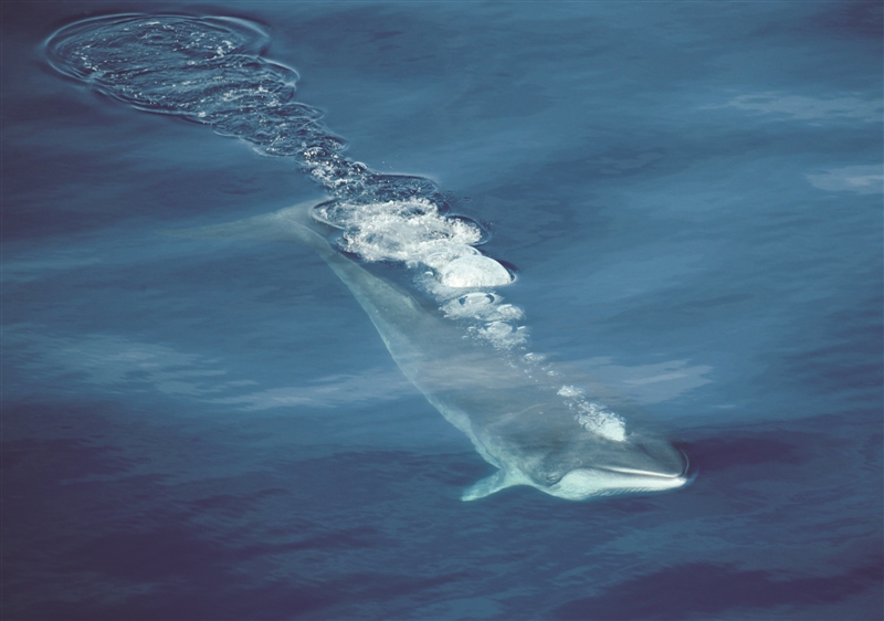 | 南极小须鲸:须鲸科中体型最小、数量最多、分布最南的物种。体长9-11米,重12-14吨,背部黑、暗灰或棕色,与体侧局部呈白色或暗灰色,腹面白色。体短粗,头部小,上额前端尖锐。 |
