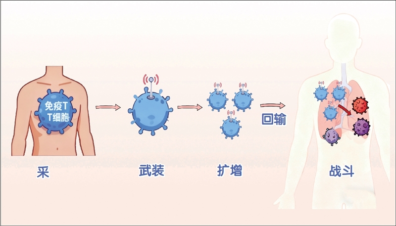 1.采:从癌症患者体内采集出普通的免疫T细胞;