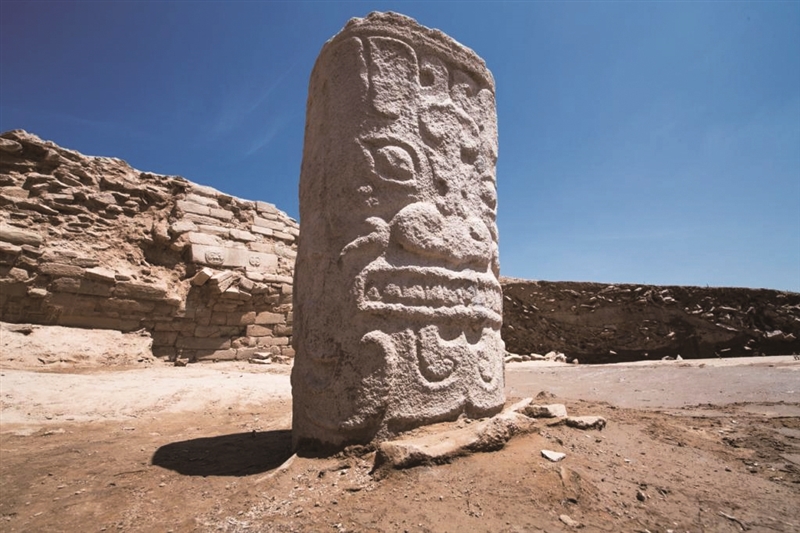 左图为石峁古城遗址,右图为古城石雕。 (中国科学院古脊椎动物与古人类研究所供图)