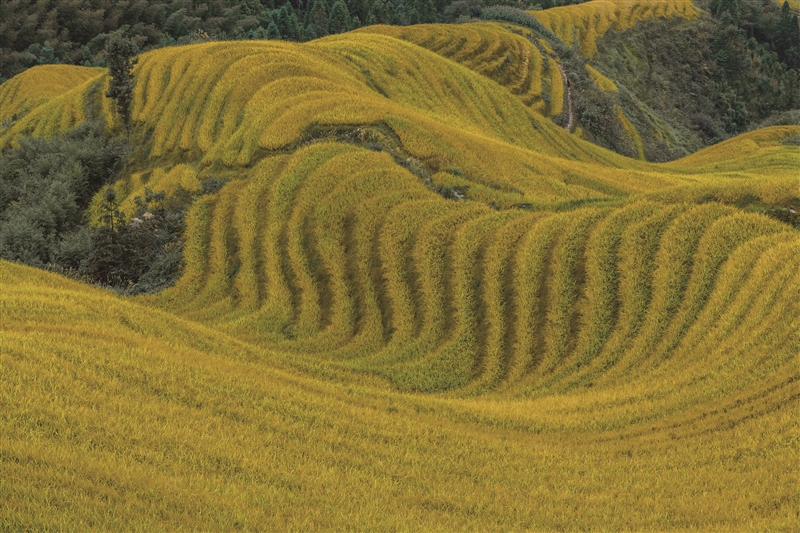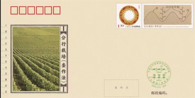 | 图①: 广西壮族自治区桂林市龙胜各族自治县龙脊镇平安村龙脊梯田(梯田垄作)。视觉中国供图 图②③: “分行栽培(垄作法)”纪念封及内插页。 中国集邮有限公司供图 图④: “垄作”篆刻章。马国馨院士 刻 |