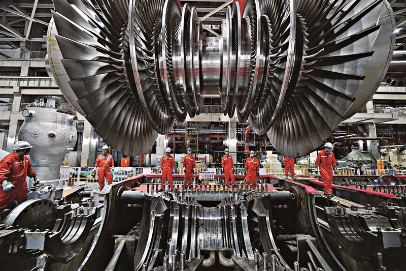 | 2024年9月22日,福州市中国华电福建可门三期2×1000兆瓦煤电项目6号机组汽轮机转子吊装调试。 安静 摄 |