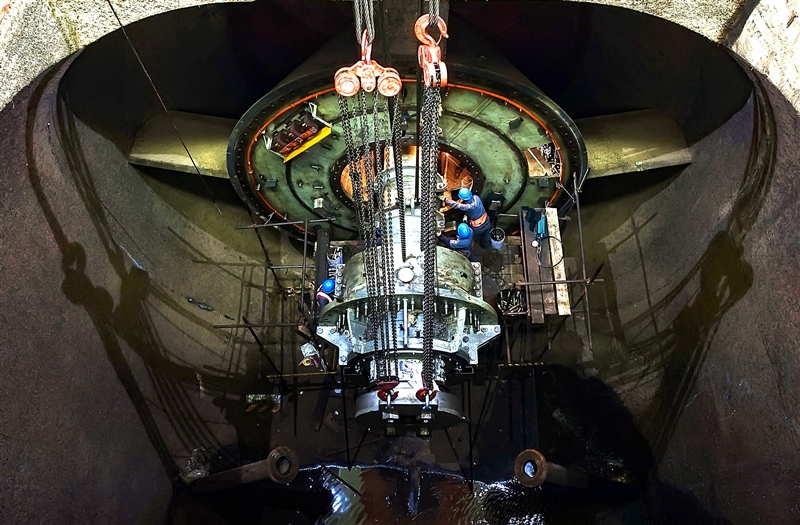 | 2015年12月16日,福建省永安市贡川水电站,技术人员正在对贯流式水轮发电机组电机转子进行检修。 谢琳娜 摄 |