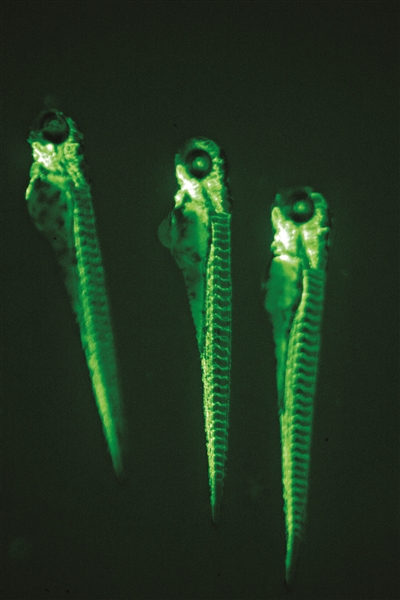 | 2024年9月23日,在水生所国家斑马鱼资源中心实验室,斑马鱼的血管分布情况在荧光显微镜下清晰可见。(显微摄影) |