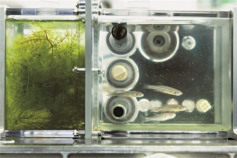 | 2024年10月22日,这个装着4尾斑马鱼与4克金鱼藻的“太空鱼缸”,是斑马鱼在太空中的小型受控生命保障系统。 |