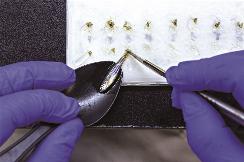 | 2024年7月29日,在水生所国家斑马鱼资源中心实验室,科研人员切下麻醉后的斑马鱼尾鳍,开展分子生物学研究以进行亲子鉴定。 |