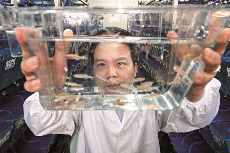 | 2024年9月26日,水生所国家斑马鱼资源中心主任孙永华在鱼房内观察斑马鱼样本。 |