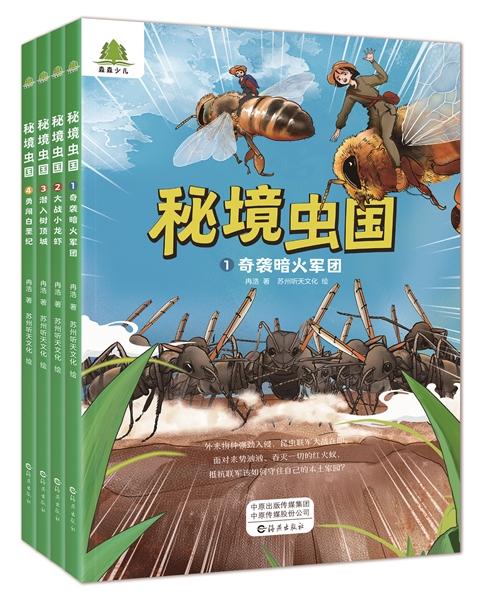| 《秘境虫国》(共4册),冉浩著,苏州听天文化绘,中原出版传媒集团 中原传媒股份有限公司 海燕出版社出版。 |