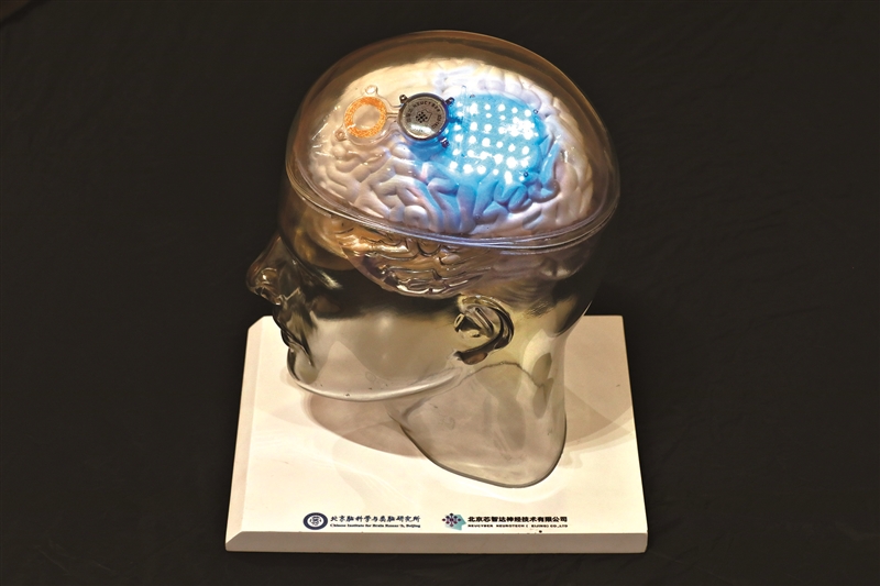 | 2025年5月26日,在北京脑科学与类脑研究所展厅展示的“北脑一号”体内机头模。李子奇 摄 |