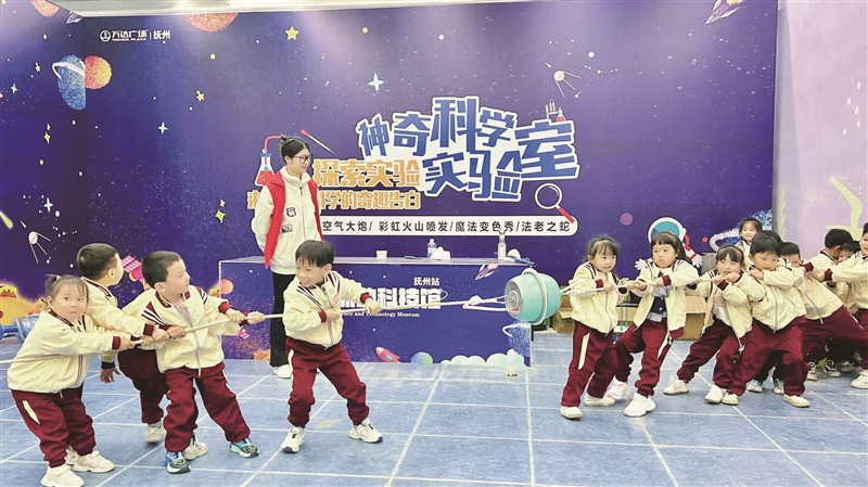 “过去,抚州市的流动科技馆巡展基本设在学校,参观人员基本上是所在学校学生及附近学生,辐射范围有限。”抚州市科技馆馆长黄迎春介绍,为了突破这一局限,让科普资源惠及更广泛的人群,抚州大胆创新,将巡展设在城市核心商圈,为市民打造了“购物+科普+亲子”的一站式新奇体验。