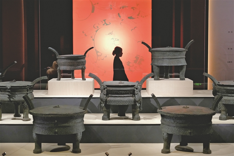 展览不仅展出了九鼎八簋(ɡuǐ)青铜礼器组合、成套的青铜编钟与石编磬、工艺精湛的玉璧与玉璜、纹饰华丽的彩绘龙凤纹漆木案等代表性器物,更系统展示了考古发掘的科学历程。